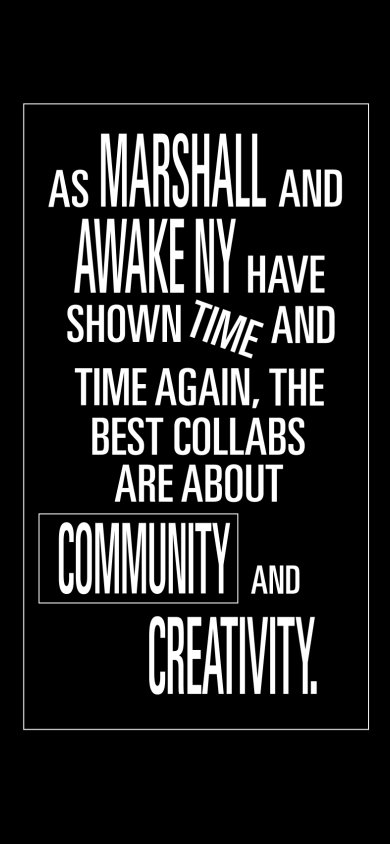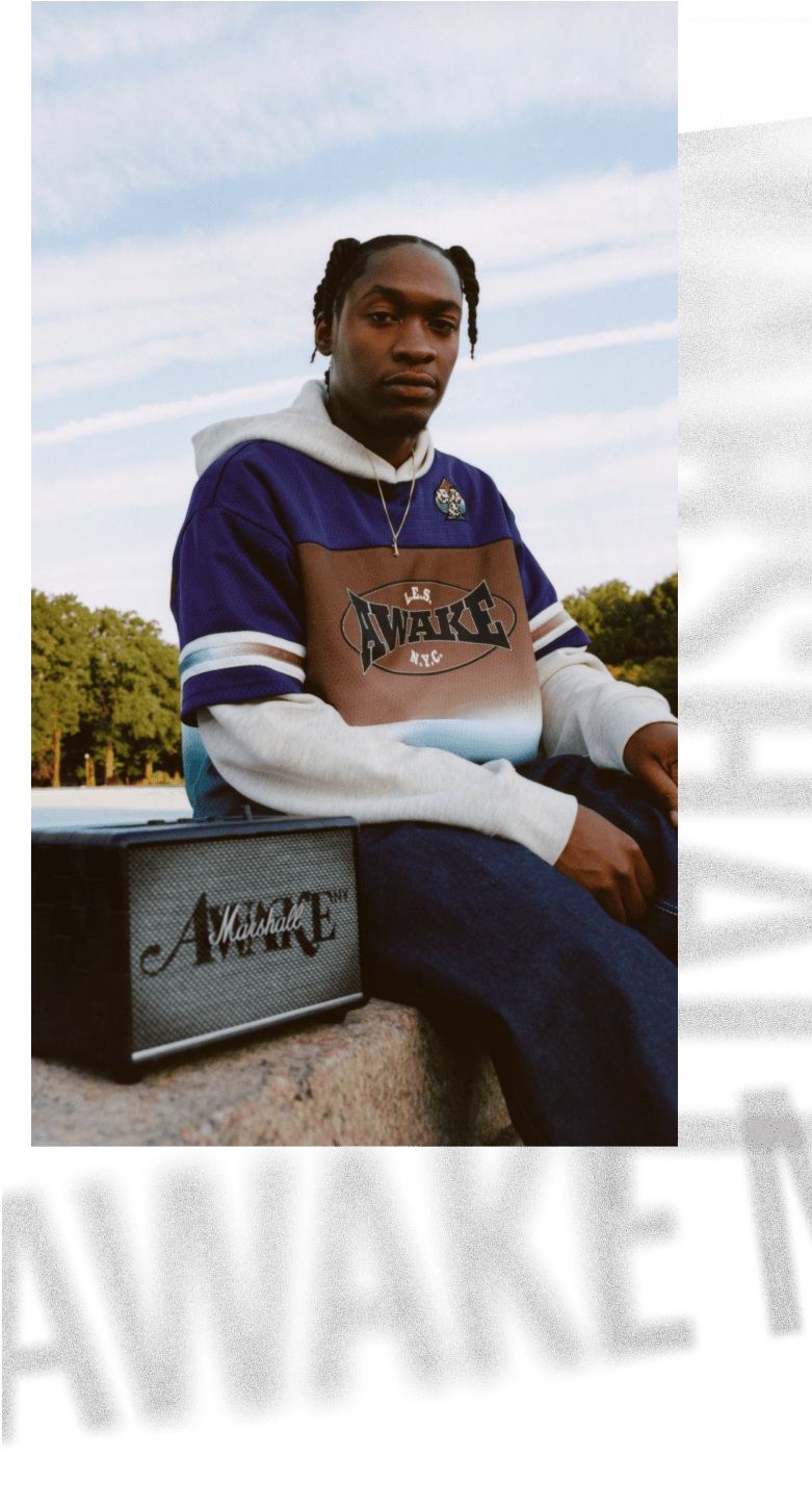 FOR THEIR FIRST PRODUCT COLLABORATION AWAKE NY AND MARSHALL ARE BRINGING US A LIMITED-EDITION VARIATION OF THE BELOVED MARSHALL ACTON III SPEAKER. STAYING TRUE TO AWAKE NY AND MARSHALL’S ETHOS, THIS SPEAKER ISN’T JUST ABOUT BLASTING YOUR FAVORITE TUNES, BUT ABOUT BRINGING PEOPLE TOGETHER THROUGH MUSIC, CULTURE, AND CREATIVITY. BLENDING MARSHALL’S ICONIC AUDIO ENGINEERING WITH AWAKE NY’S CITY-INFUSED DESIGNS, THIS SPEAKER IS JUST AS AT HOME IN AN ARTIST’S LOFT AS IT IS IN A DOWNTOWN DJ’S SETUP.