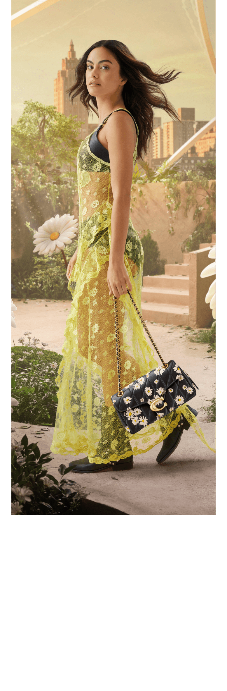 Puns aside, our fave virtual influencer, imma returns in the latest release of Coach’s five-level campaign, Find Your Courage, and boy, is she blossoming. She’s so close to “realness”—but not quite there just yet. Under the guidance of expert evolver and onscreen chameleon, Camila Mendes, the bot journeys through a series of self-reflections in a flowery garden amongst the futuristic New York landscape. The episode reads like a beautiful self-help book entitled something along the lines of “Don’t be scared! Keep growing!” With a daisy-printed Tabby slung over her shoulder, Mendes fearlessly leads the charge towards metamorphosis and imma follows suit, self-actualization at stake.