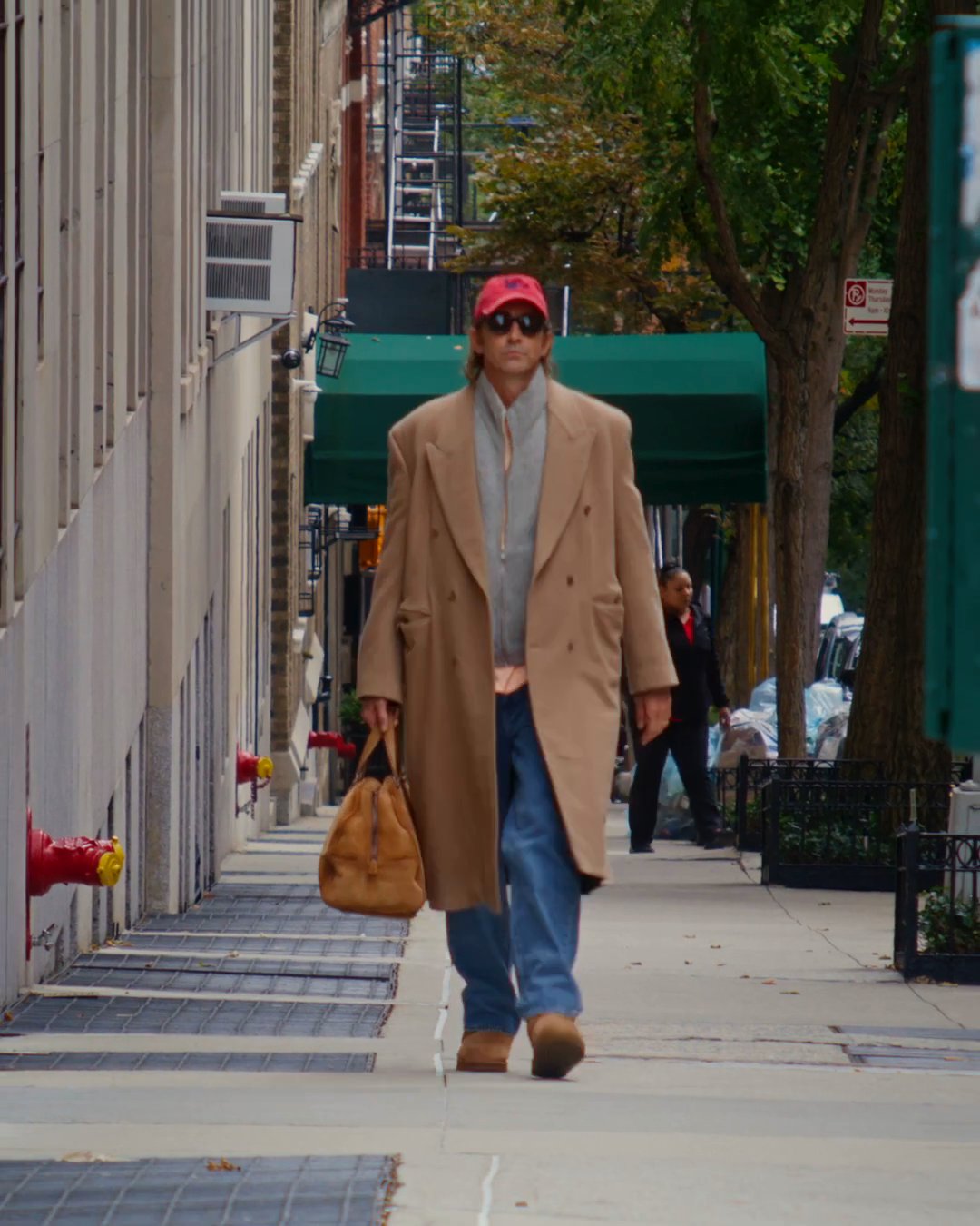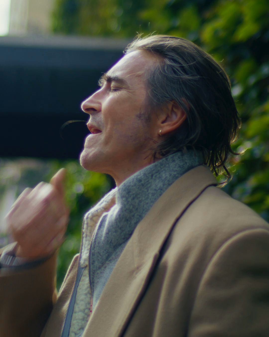In search of this apparent zen myself, perhaps, I ask him what’s most exciting in his life right now. He’s about to hit the road for a slew of events celebrating the release of one of this fall’s most anticipated films, The Running Man, in which he plays the villain opposite Glen Powell. “I mean, I’m such a boring person,” he responds, grinning, turning toward me on an Upper East Side bench. “My garden.”
