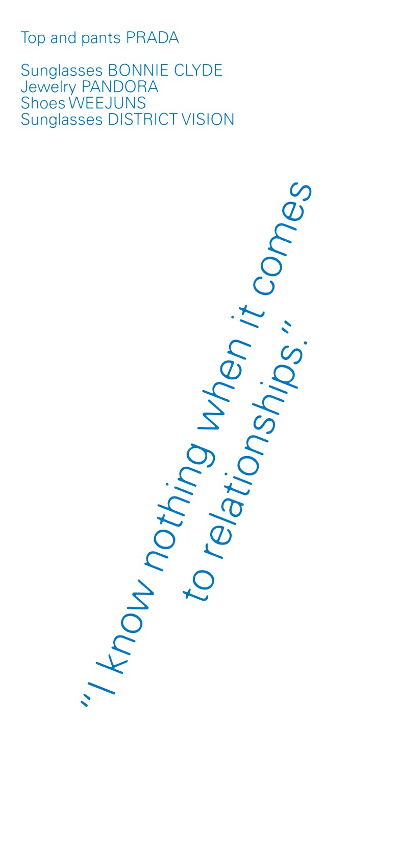 More important, she says, is love. “Love is the most important thing in the world. So if you’re in love, you’re brave, and it’s an important thing to cherish,” she muses, unprompted, gesturing with both hands. “Being lonely is good. If you can be alone, then you can be with another person, probably.” On the latter assertion, she checks herself: “I know nothing when it comes to relationships.”