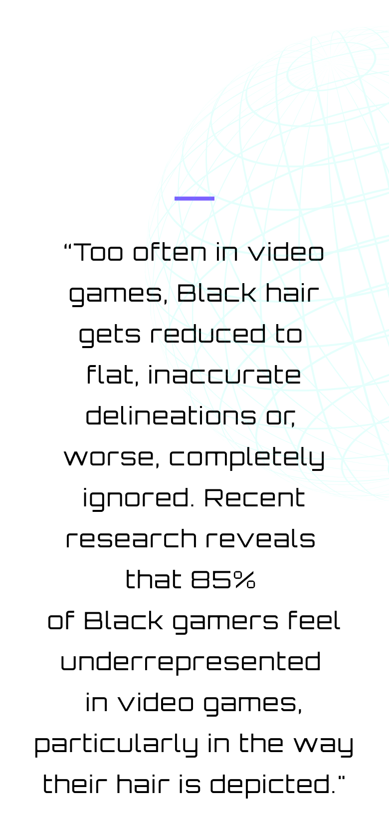 Now, as new players like Code My Crown power up, the digital age is loading a more inclusive dimension. Created by Dove in collaboration with Open Source Afro Hair Library, Code My Crown bestows developers with a 200-page step-by-step coding guide for properly rendering Black hair (and styles). “When Black hair is absent or poorly represented in games, it tells Black players that our culture isn’t valued,” notes A.M. Darke, Founder of Open Source Afro Hair Library.